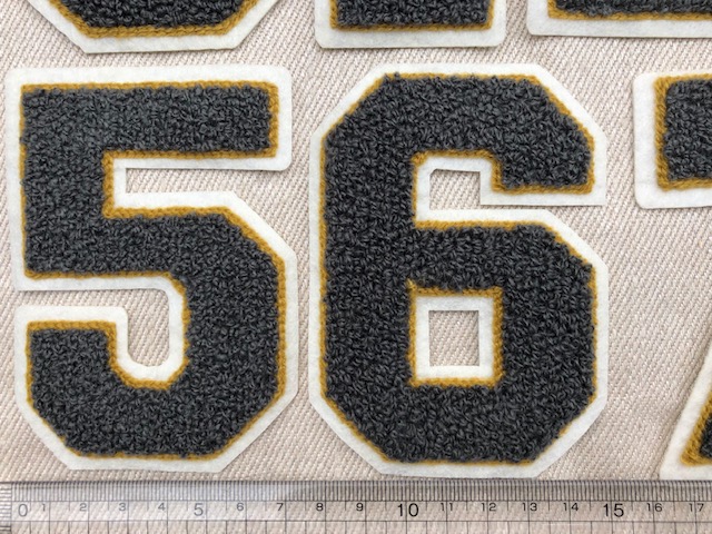 青みのグレーx金茶色の縁取りで、寒色系にも暖色系にも合いやすい色合いです。