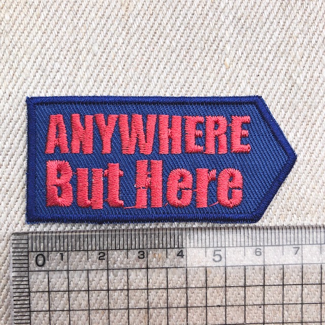 青色のツイルに刺繍してあります。矢印型なので斜めにしたりなど動きのつけやすいデザインです。