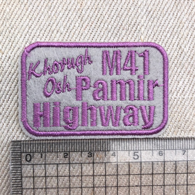 地名シリーズ パミールハイウェイ とグレーのフェルトに刺繍してあります。